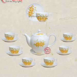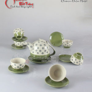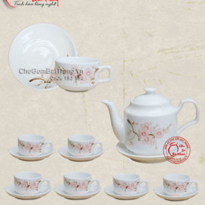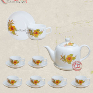 Bộ ấm chén men kem gồm: 1 ấm 6 chén và 7 đĩa kê
