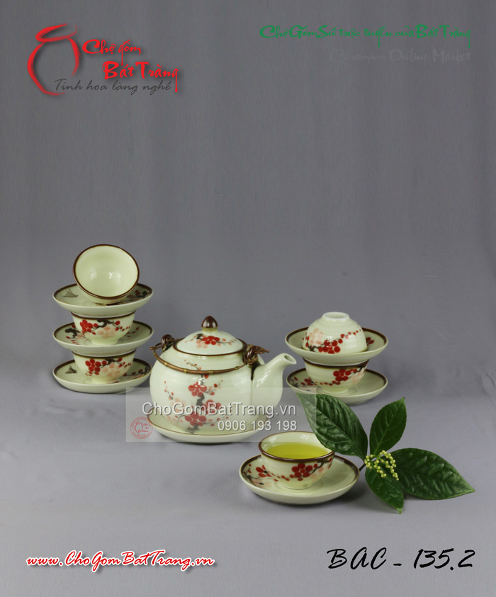 Bộ ấm chén men kem được sản xuất tại Bát Tràng với chất liệu gốm sứ cao cấp của Bát Tràng. Bộ ấm chén men kem được đốt trong lò với nhiệt độ 1300 độ C, nên các chất độc hại được khử hết đảm bảo sức khỏe cho người sử dụng. Màu men không phai, không ngả màu. Hoa văn trên sản phẩm, không bị trầy, không bị tróc, bền đẹp theo thời gian, khó bể mẻ khi va chạm.